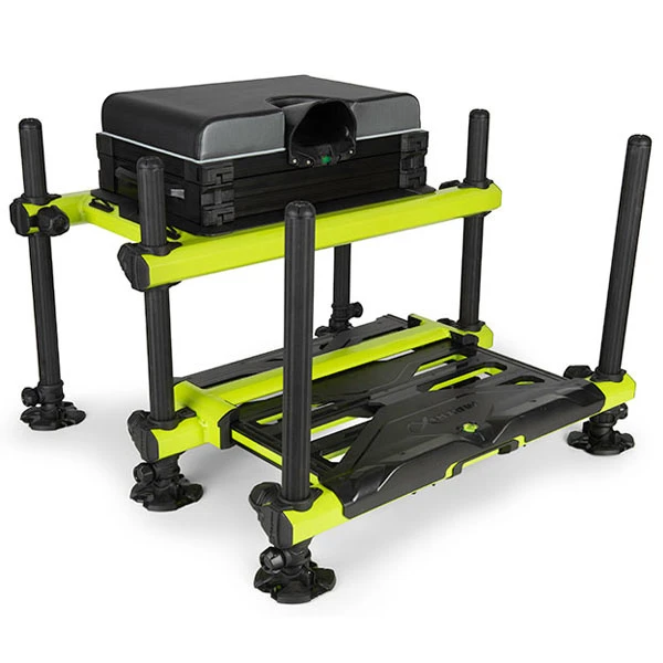 De Matrix XR36 Comp Seatbox Lime is voorzien van een zeer fraai design en door het groene frame heeft deze zitkist een uitermate sportief uiterlijk. Dankzij de 36 mm brede poten staat de XR36 Comp Seatbox Lime zeer stabiel en door het aluminium frame is hij toch zeer licht. Daarnaast heeft deze kist een comfortabele zitting en veel opbergruimte. De Matrix XR36 Comp Seatbox Lime is voorzien van zes telescopische poten met grote moddervoeten en een verwijderbare schouderband.Â