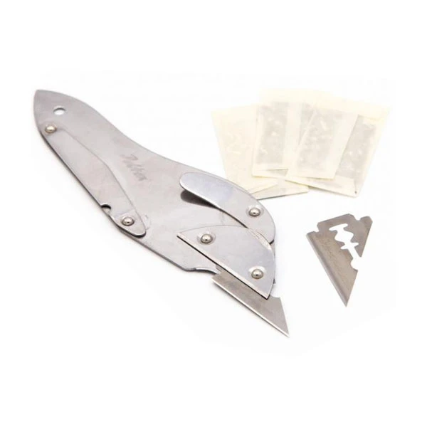 De Fly Scene Skin Knife is een handig mesje welke veelzijdig toegepast kan worden bij het binden van vliegen. Dit mesje heeft een metalen huis met verwisselbare scheermesjes, welke tevens meegeleverd worden. De Fly Scene Skin Knife kan ook gebruikt worden voor het snijden van diverse soorten huiden om bijvoorbeeld zelf zonkerstrips te maken.