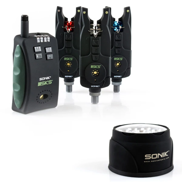 De Sonik SKS Alarm Set is een schitterende beetmelder set welke over diverse opties beschikt, zo zijn het volume, de toonhoogte en de gevoeligheid nauwkeurig in te stellen. Ook de receiver kan op verschillende standen worden ingesteld. De Sonik SKS Alarm Set bestaat uit drie beetmelders, een receiver en een handige Bivvy Lamp.